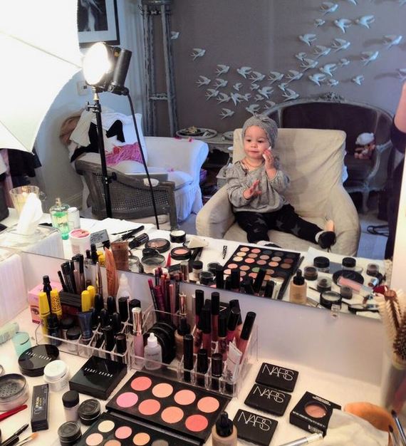 Jack Osbourne’s adorable little daughter looks every inch the pro as she applies make-up to her face.