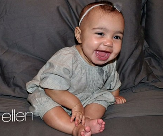Kim Kardashian has shared a gorgeous photo of her adorable little girl North on the Ellen show. The happy little seven-month-old is snapped sporting a huge grin across her face.