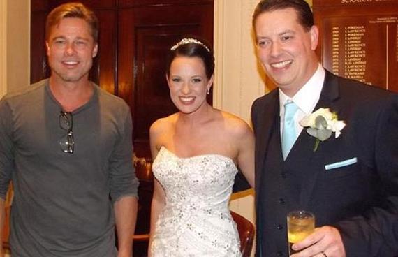 Abi Lingwood had an unexpected guest at her wedding last weekend when she and her husband discovered Brad Pitt was staying at the same hotel that they were having their wedding reception. Pitt is currently filming his latest fim at Pinewood Studios was seen at the bar by the groom Daniel, and he persuaded him to come and meet his new wife, and to pose for a photo. Abi said 'My husband said to me Brad Pitt was at the bar and you have got to come with me so he dragged me across the hotel. I thought he was joking.' She added: 'He said congratulations and I hope you have had a great day and let's have a picture. And he said I looked nice. He was really nice.'