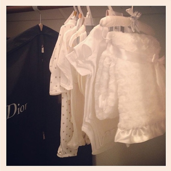 The singer is keeping quiet about the sex of her first child- buying all white baby outfits.
