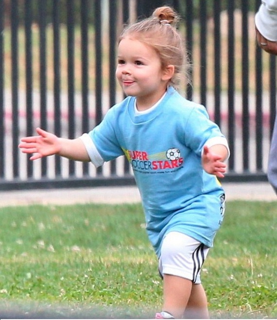 It looks like little Harper Beckham has inherited her daddy’s football skills.