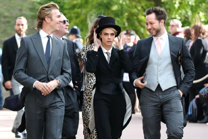 Cara has been the talk of the royal wedding. She looked captivating in her sleek suit and top hat. Her skinny tie and fitted look was a chic choice, and paired with black heels, her look broke the rules in the best way.