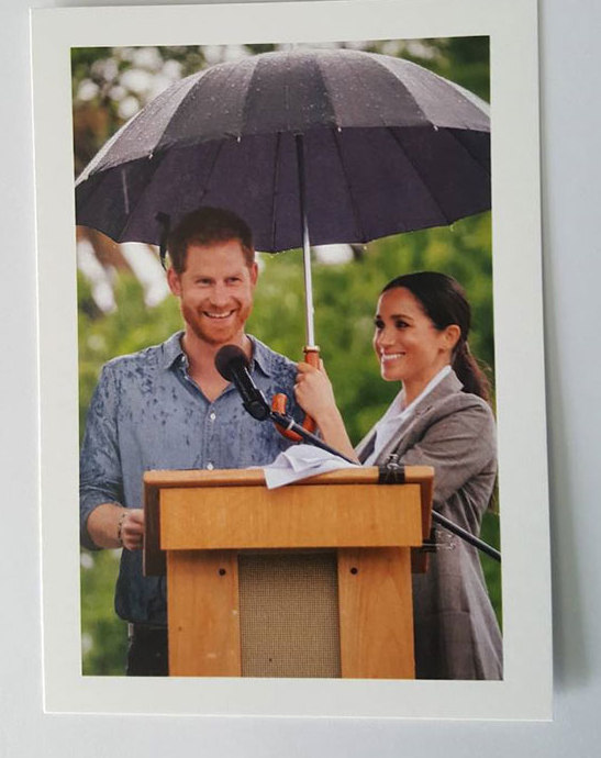 The gorgeous photo sees Meghan holding an umbrella over Harry's head while he delivered an important speech in Dubbo.