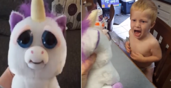 Showing us a clip of the unicorn, it looks as cute as a button, until Mum presses a button and within seconds we're terrified.