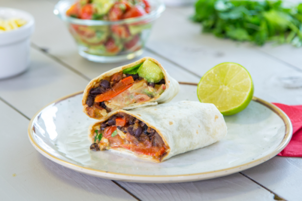 You can add some protein to these tasty vegetarian wraps with leftover rotisserie chicken or some chickpeas.