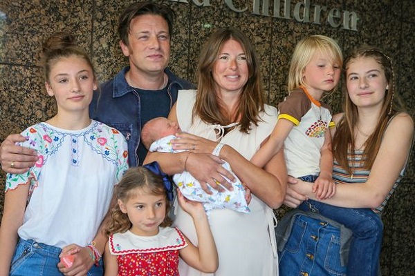 Jools, who has been married to celebrity chef Jamie for 16 years, is mum to Poppy Honey, 14; Daisy Boo, 13; Petal Blossom, seven; Buddy Bear, six; and baby River Rocket.