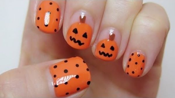 Add some Halloween tradition to your manicure with cute little pumpkin faces.