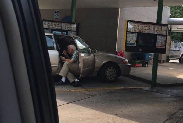“I realised that this elderly man beside me was sitting outside his car door, spoon-feeding his wife ice cream, who also looked in her late eighties,” he wrote.