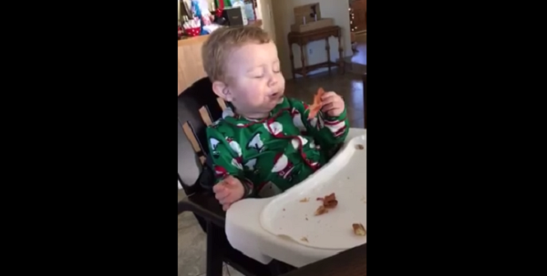 Bacon-lovers can all relate to the look of pure, unadulterated delight and satisfaction on Easton's face as he tucks into the meat while sitting in his highchair. And after the tenth joyful cry, we think it's safe to say that Easton has a new favourite food!
