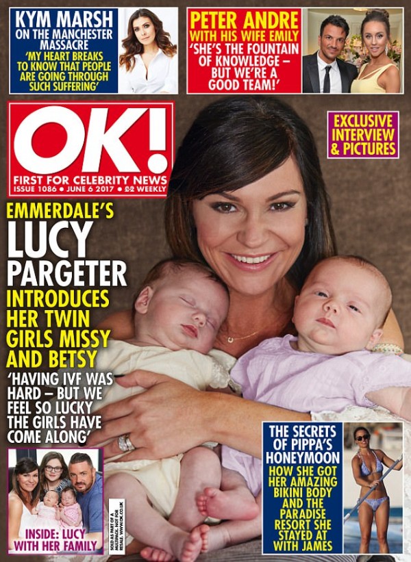 The Emmerdale star, 40, posed up a storm with twin daughters Missy and Betsy, for the latest issue of OK! magazine.