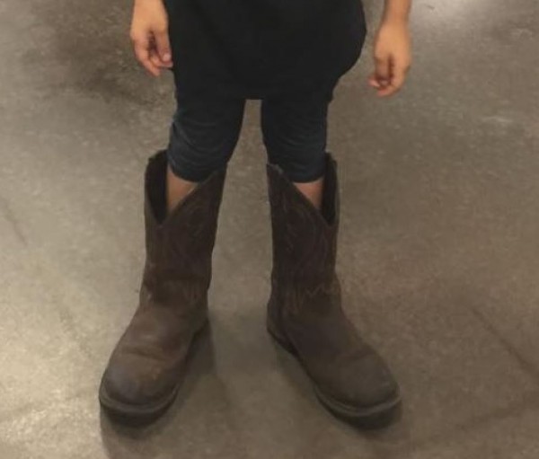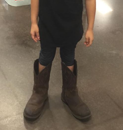 Katie Shuler was at the grocery store picking up a few items, when she encountered a young girl wearing pretty big boots.