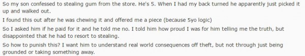 Userbelowisamonster revealed his five-year-old son had taken chewing gum from their local store without paying.